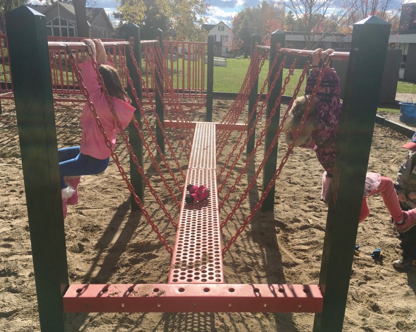 Most mornings, our playground structure is teeming with bodies. There are children climbing, sliding, crawling and jumping. A teacher stands nearby and observes a small group of children navigate who will use the slide.